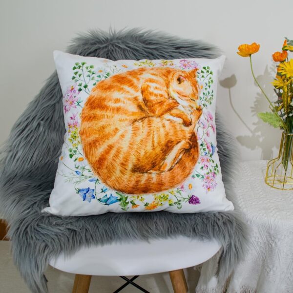Cat Pillow Cover Sleeping Cat in Delicate Wild Flowers Cat Gifts Pillow Cover for Cat Lovers