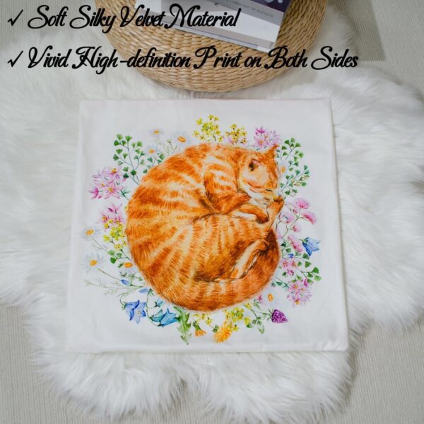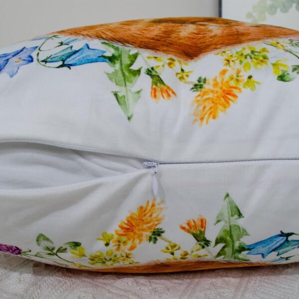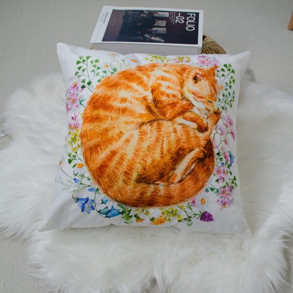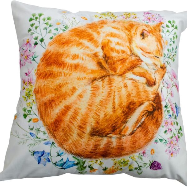 Cat Pillow Cover Sleeping Cat in Delicate Wild Flowers Cat Gifts Pillow Cover for Cat Lovers
