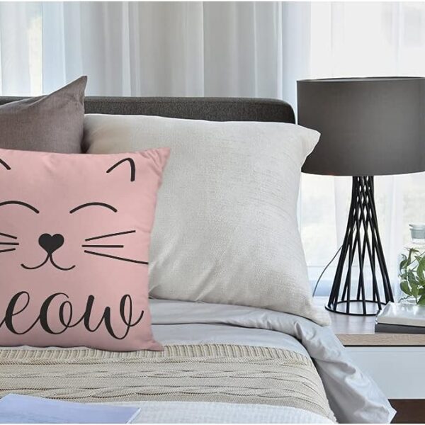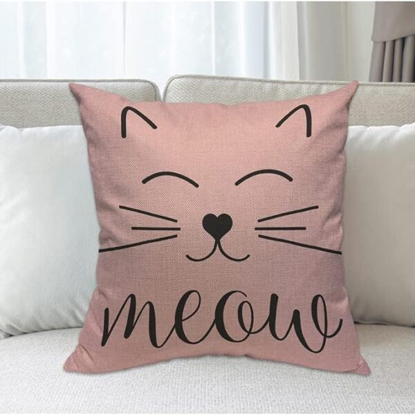 Mugod Cat Face Pillow Cover Throw Pillow Covers Cute Cat Smile Meow Pink Pillow Case for Men Women Decorative Home Sofa Chair Couch 45x45cm/18×18 Inch