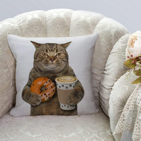 Tomda Pillow Cover The Cat Holds a Cup of Coffee
